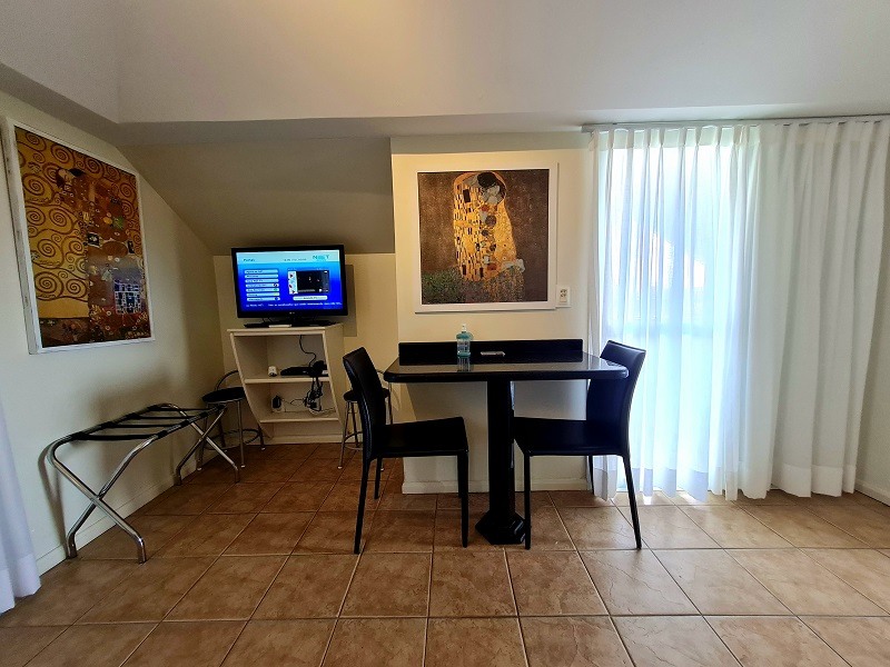 Cafe da manha eh uma delicia! super caprichado e com bastante variedades! o quarto com uma infraestrutura mt boa, com ar condicionado, cozinha privativa, banheiro espacoso, varanda com varal, atendeu muito bem as nossas necessidades! alem da psicina aquecida e o kit praia q eles oferecem durante a estadia! as musicas classicas tocadas durante o cafe da manha e na piscina sao mto boas!! otimo gosto!! foram apenas duas diarias mas a gente amou tudo! com ctz voltaremos na proxima oportunidade! e recomendamos!